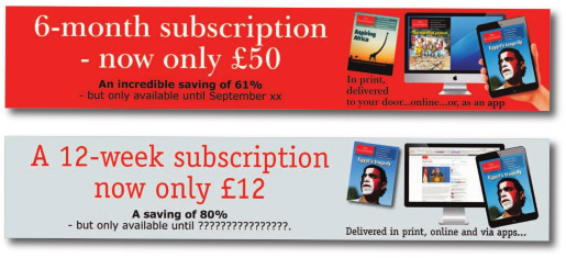 A series of HTML emails, together with related Digital Banners were written and created for a new subscription drive. Attractive, stimulating and focused.